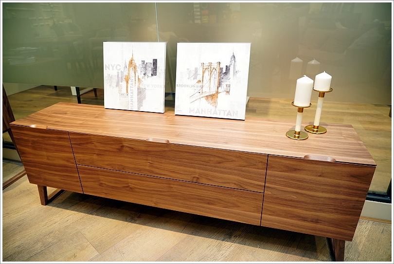 ▼櫃子也有很多種用途跟選擇,像是這款Anna電視櫃採用的是核桃木,木紋對花就對的很順,看起來很有質感也易於融入多種居家風格!