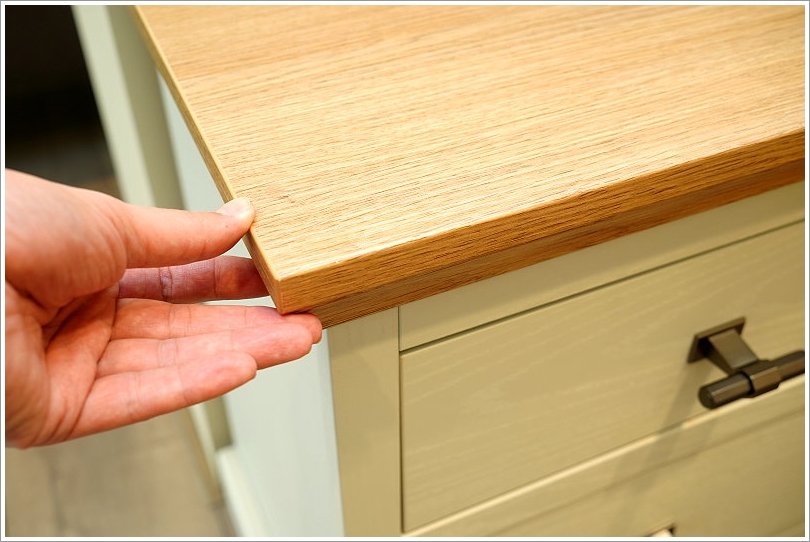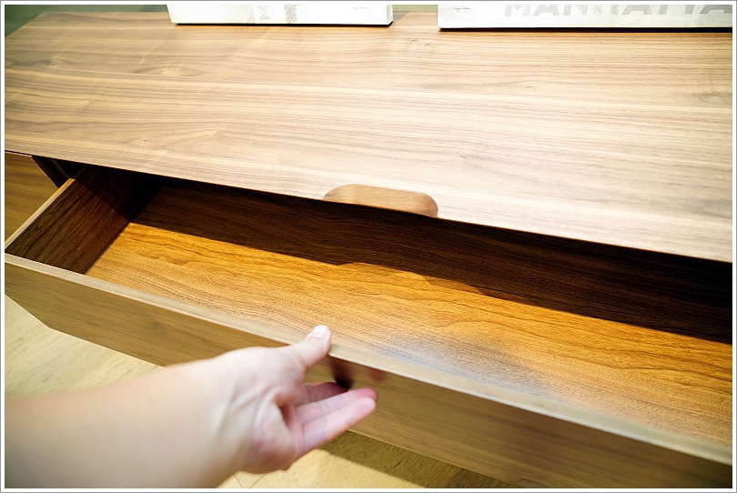 ▼抽屜抽拉也非常順暢,把手邊圍特別以45度切角呈現,抽拉中不會有卡卡或是木屑刺手的感覺!