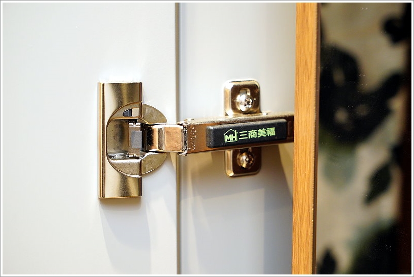 ▼值得一提的是高櫃的絞鏈,一般櫃子頂多兩個,它的竟然有四個,多絞鏈的設計是因為原產地本身氣候較寒冷,為了避免熱脹冷縮的問題,希望讓櫃體更為耐用,加上三商美福提供的永久保固,讓人使用起來更加安心!