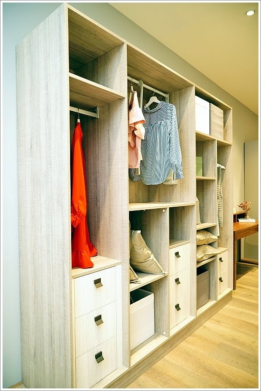 ▼整面的衣櫃則是用系統板材做的,不僅空間利用的剛剛好,而且木紋也非常耐看!此外也有舊櫃搬遷的服務,如果搬家後也可以將整個櫃體搬走,或是再換個門板又可以擁有嶄新風格!
