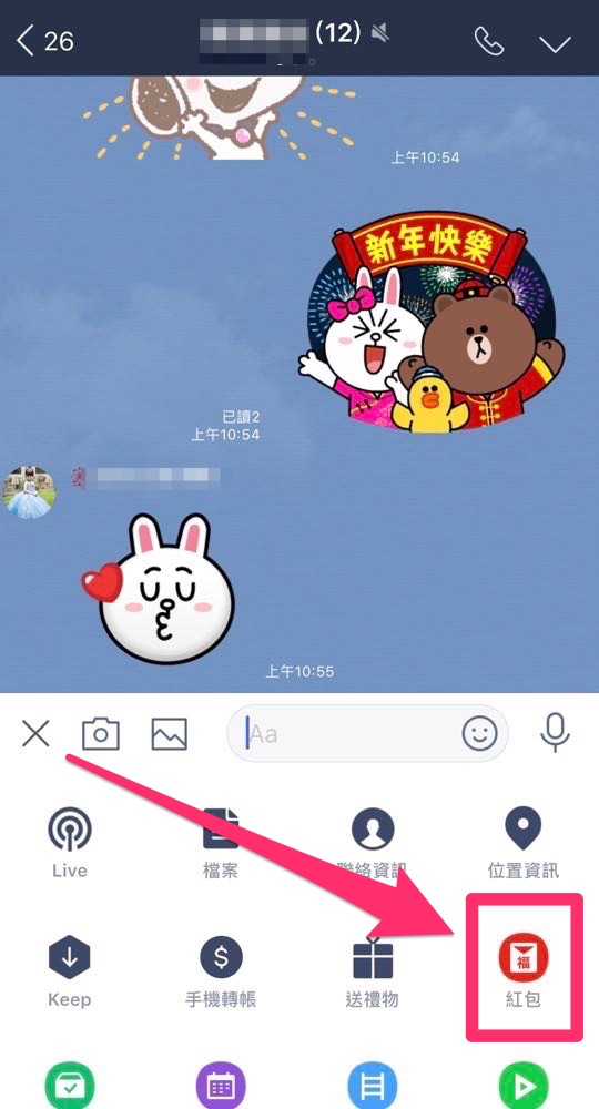 (1) 要送紅包給好友有兩個方法,一個是從 LINE Pay 下方的活動中選擇 “紅包” 選項,另一個直接在好友群組中透過 “+” 來選擇 “紅包”。