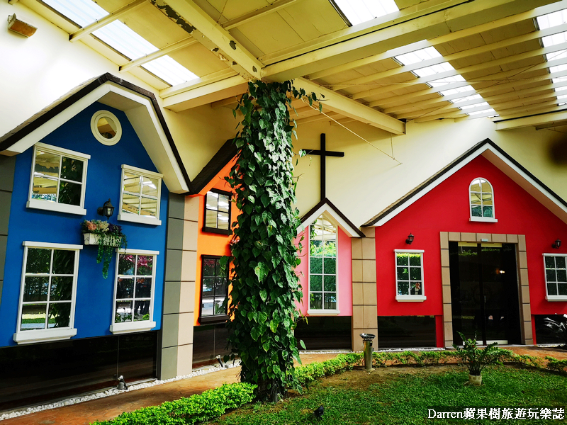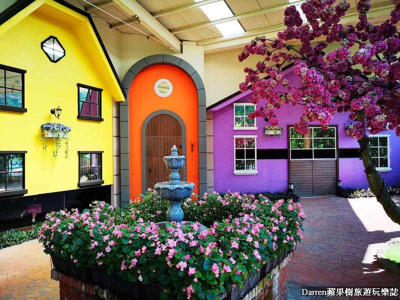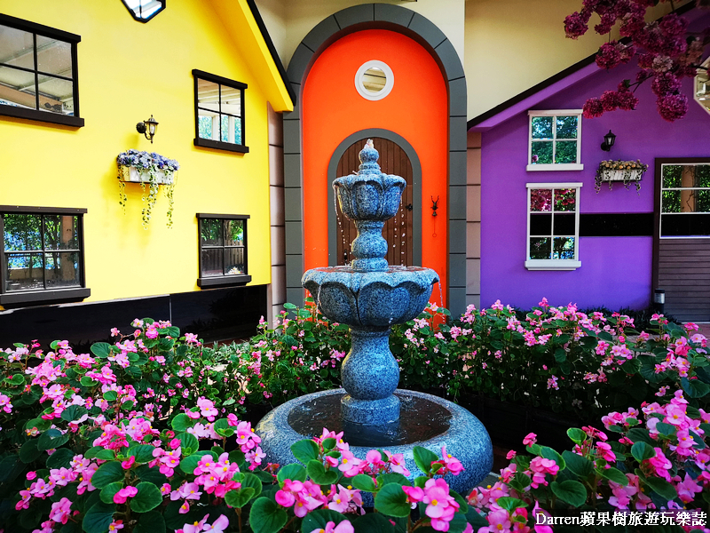 阿沐會館歐風小鎮,室內景點就隱藏在阿沐會館內,彩色屋子造景拍起來很有FU,還有噴水池跟花草佈置很好拍。
