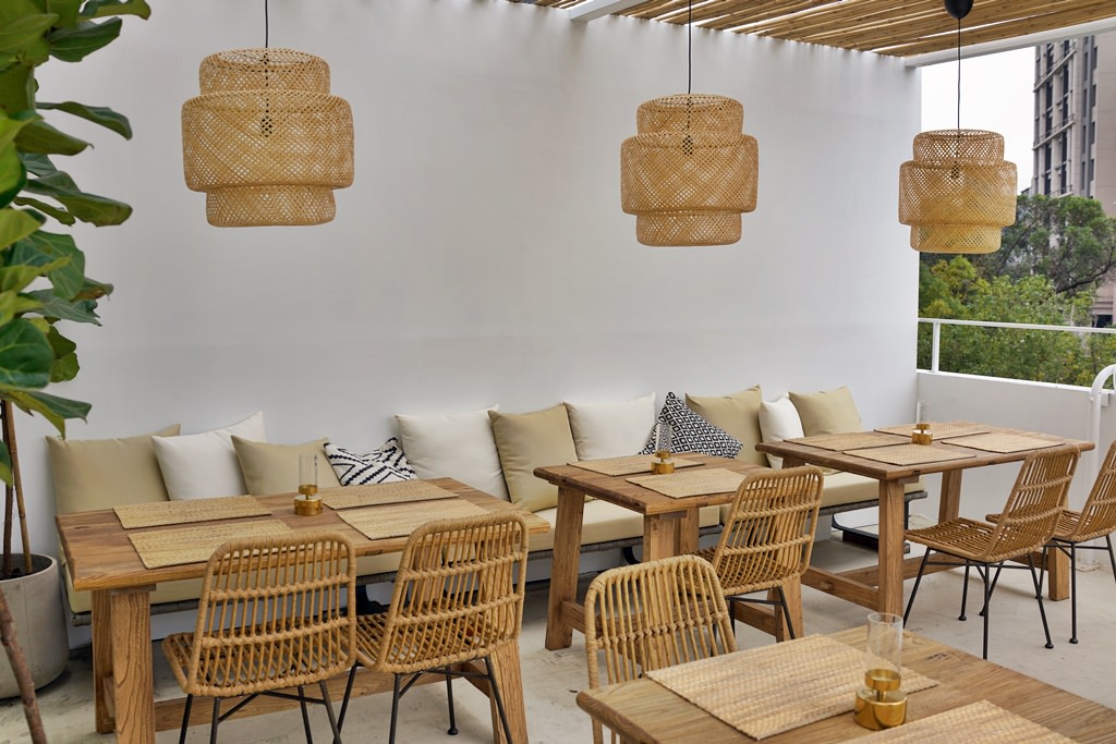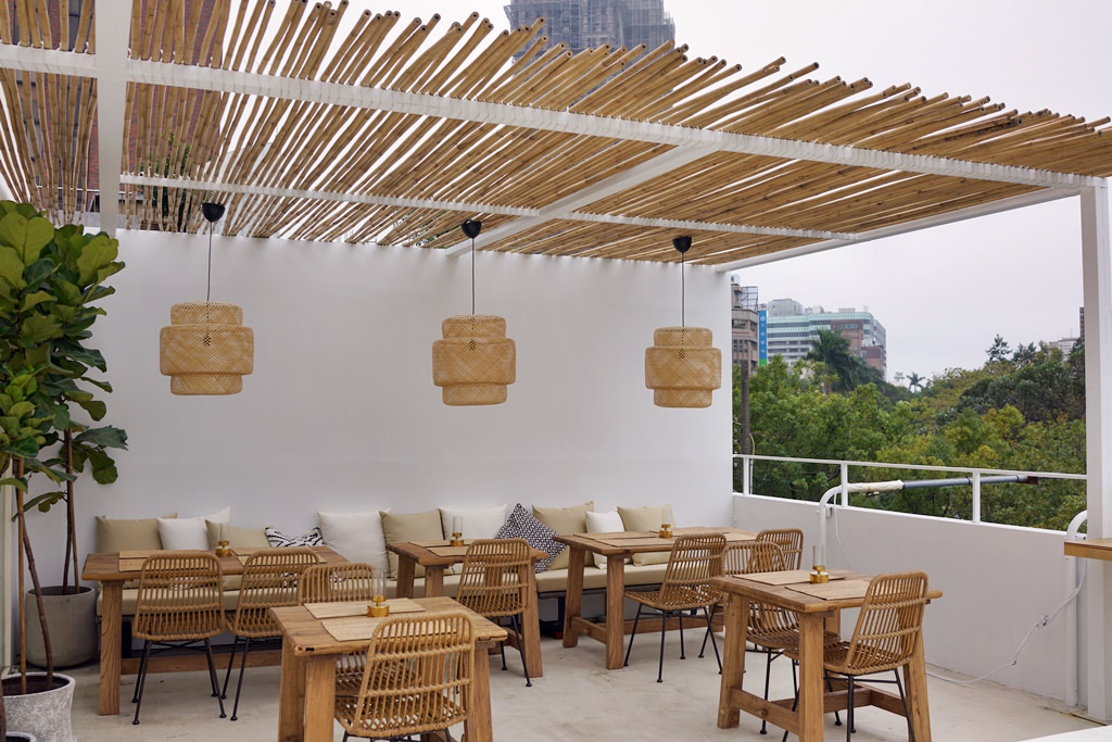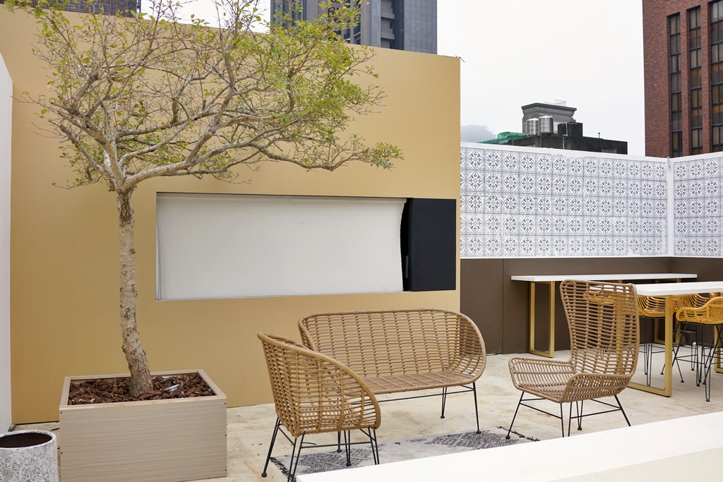 一走上天台,美的讓人驚呼!彷彿來到泰國嗎?整體以藤編材質為主、舒適的色系,營造度假氛圍,目前還有部分裝潢還未完成,之後中間還會有水池,蠻期待全部裝潢完成的樣子,感覺一定會超美呀!只是天台座位區是露天的,下雨天就沒辦法坐了。