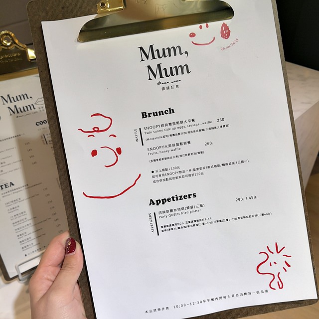 最新推出早午餐,營業時間也改成早上十點開始,早午餐目前有兩款,都是以史努比鬆餅為主,以上餐點+100元可享有Snoopy飲品一杯,其他飲品菜單跟之前一樣,有咖啡、熱茶、氣泡飲等。