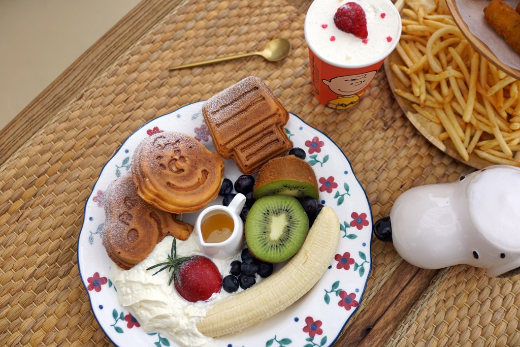 史努比造型鬆餅真的好可愛,超適合拍照的,不過它僅僅就是拍照道具,因為完全沒有味道啊!基本鬆餅該有的甜味都沒有,口感也蠻奇妙的…這兩份早午餐最好吃的就是德國香腸跟水果,哈哈哈!希望店家速速改進,不然真的很可惜。