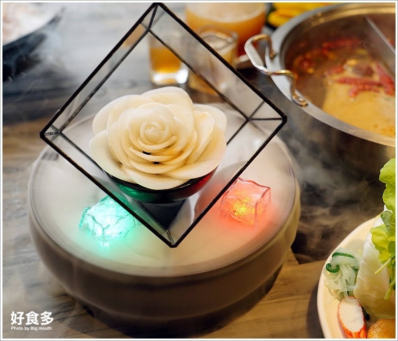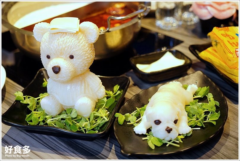 大口又來超喜歡的「好食多涮涮鍋」雙城店報到啦!位於台北晴光商圈裡頭的「好食多涮涮鍋」雙城店,不僅平日中午也是人潮滿滿,而且外頭還有排隊人潮,大家記得要先用GOOGLE或是官方臉書粉絲團事先線上訂位以免久候唷!他們家的餐點不僅選擇多元,還有飲料、冰淇淋、醬料吃到飽,包準可以吃的飽足又滿足!像是最近推出的花好肉緣雙人套餐,不僅超夢幻、超浮誇,根本是整個玫瑰松阪豬花音樂盒扛上桌~加上6.5盎司CAB牛小排(可換伊比利豬)、6.5盎司自然牛雪花及店家贈送的牛肉、豬肉各2盤,另外還有海鮮五選二,吃完保證超級過癮的啦!此外還有壽星獨享優惠,只要是生日前後一週都可以事先預訂,就能免費獲得超美、超有仙氣的玫瑰松阪豬花或玫瑰軟絲一份,很適合來慶生聚餐,包準開心又滿意!另外點香醇牛奶鍋的朋友千萬別錯過還有超萌的牛奶泰迪熊與牛奶沙皮狗,都是店家提供免費加湯使用(每桌限一隻),真的是太佛心、太霸氣了啦!另外愛吃肉或是熱愛海鮮的朋友也可以點13盎司安格斯無骨牛小排+黃金級松阪豬雙拼、7盎司日本A5和牛(雙部位),或是單人海鮮總匯、野生波士頓活龍蝦等,通通都是700元有找(不含服務費),不傷荷包也能吃好吃滿啊!