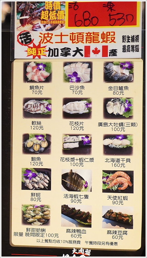 ▼想來隻波士頓龍蝦也沒問題!!店家選用的是加拿大產、野生捕撈最高等級,整隻活生生、現撈的波士頓活龍蝦只賣680元~真的很佛心啊!上桌的時候龍蝦螯還在動來動去,甚至還會夾取菜葉,活力十足~如果不想自己煮的朋友也可以請廚房幫忙蒸煮,大家還可以一邊煮火鍋一邊等候,時間咻一下就過啦~且更能掌握肉質的鮮度與熟度!
