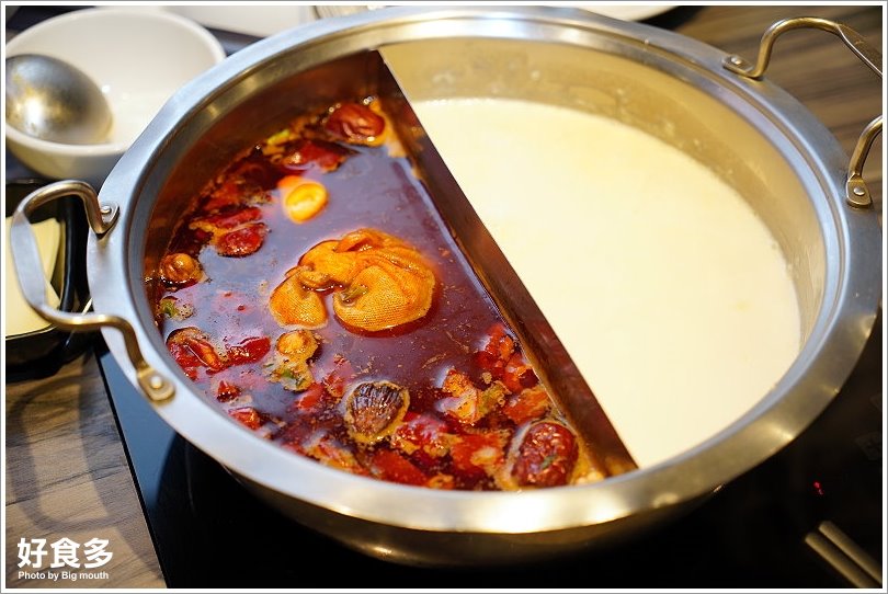 ▼他們家的湯頭也不錯,一個人的話是採用個人鍋,兩個人的話則是鴛鴦鍋,就可以一次品嚐到兩種不同風味的湯底囉!這一鍋是四川麻辣鍋搭配香醇牛奶鍋,都是人氣超旺的首選~