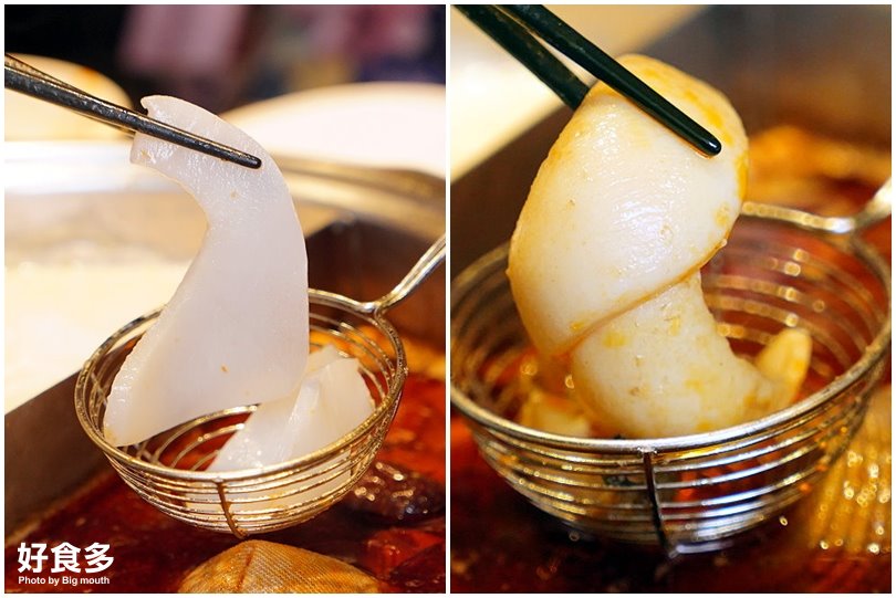 ▼雖然捨不得破壞但還是想嘗嘗它的美味!軟絲稍微燙熟後,吃起來Q彈鮮美,搭配麻辣湯頭或是牛奶湯頭都滿不錯的!