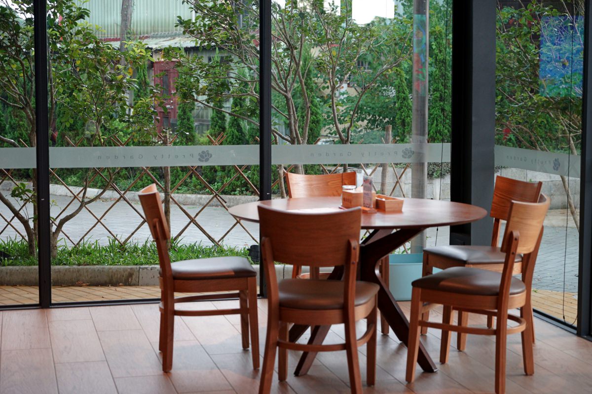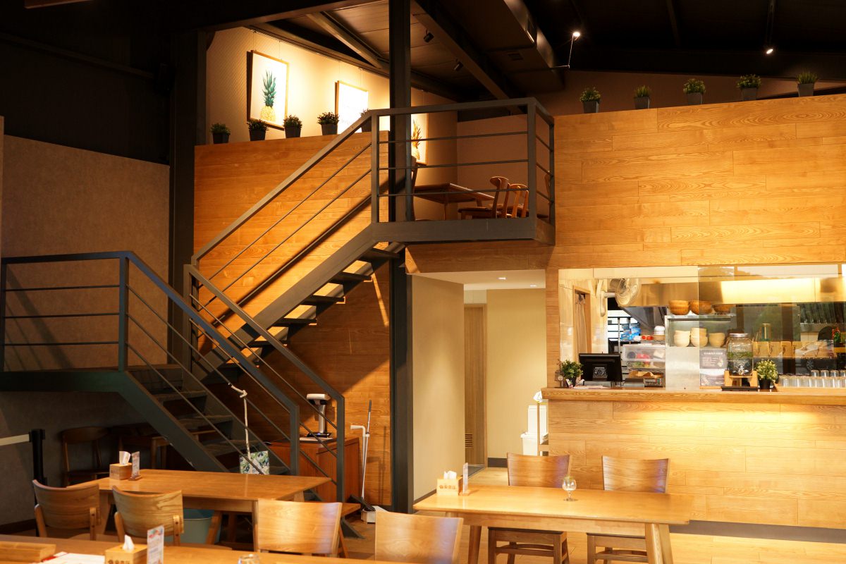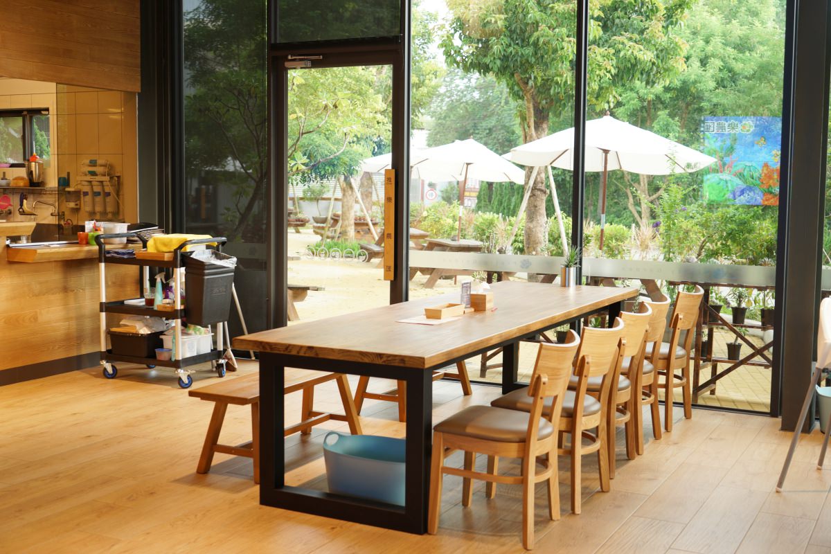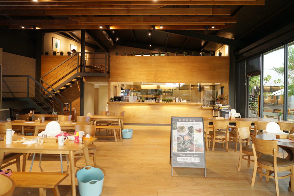 樂農匯今年三月才剛要邁入第二年,從它的外觀很難想像從前竟然是間鐵工廠。簡約大方的建築風格,大片落地窗與窗外的茄苳樹展現出明亮愉快的氣息,室內的木質色彩緩和了冷硬的工業風,桌上擺設著可愛的多肉植物畫龍點睛,都是是老闆娘的精心設計。
