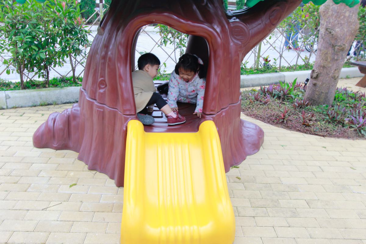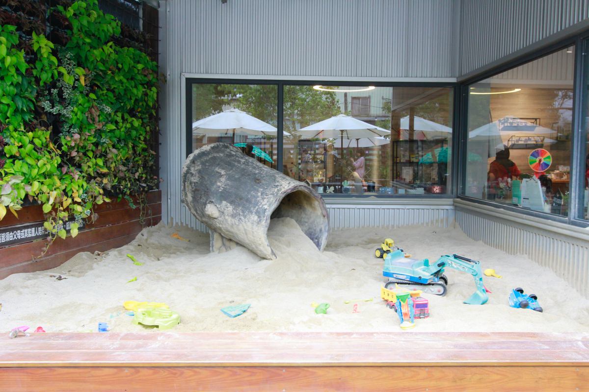 另外在這裡用餐時,你會發現很多是爸媽帶著小孩來,因為這裡有育兒界相當知名的沙坑可以玩,聽說小孩只要來到沙坑都會瘋狂愛上。老闆娘在這裡也相當用心,放了許多沙坑可以使用的玩具與大家分享,旁邊也有水龍頭可以洗濯,讓大家玩得盡興,不用擔心沙粒弄髒車子。在沙坑旁邊還有一個超級迷你的溜滑梯,原本對它不抱什麼期待,沒想到阿福竟然玩得很開心,看來它對付2歲小孩還是OK的啦!