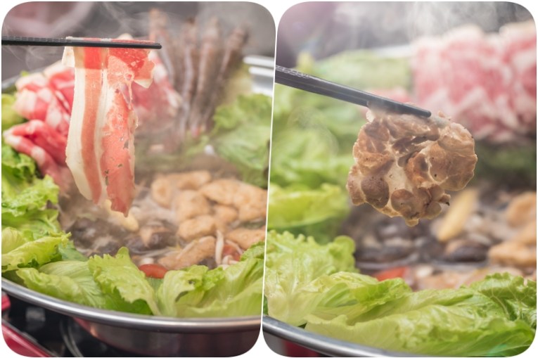 進口梅花豬有不錯的油花,搭配微辣的湯頭相對給人一種不油不膩的爽口感,這樣一整鍋吃下來不只有獨享的飽足感,也有一種豐富的層次。