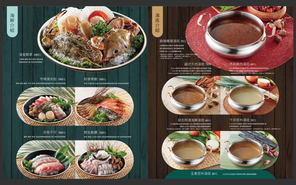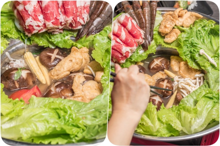 而選擇好湯頭之後,也有海鮮食材與組合可以選擇(左圖)