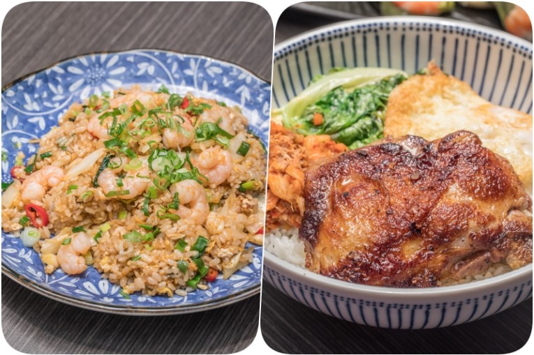 再來,左邊這道名為是拉差蝦仁炒飯(180元,份),主廚用台式炒飯的邏輯結合越式特色,展現蝦仁的鮮度之外,還能感受洋蔥、辣椒、蒜頭與是拉差醬及泰式辣雞醬拌炒後的濃郁香氣與飽滿口感。