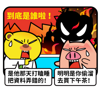 如果第一招沒用,那就快點想個讓自己沒事的理由,這時有些人就會很厲害把工作分得很細,盡量找到自己沒責任的那部分。