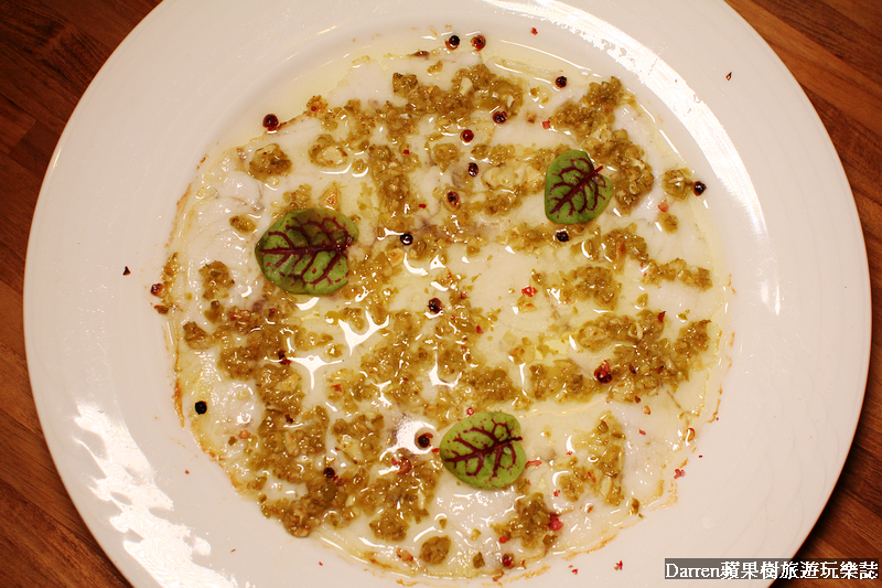 又是道擺盤很美的料理,加上食用花朵同樣好適合花草系風格的店家,這裡的醬汁不是常見的白醬加蕃茄的粉紅醬