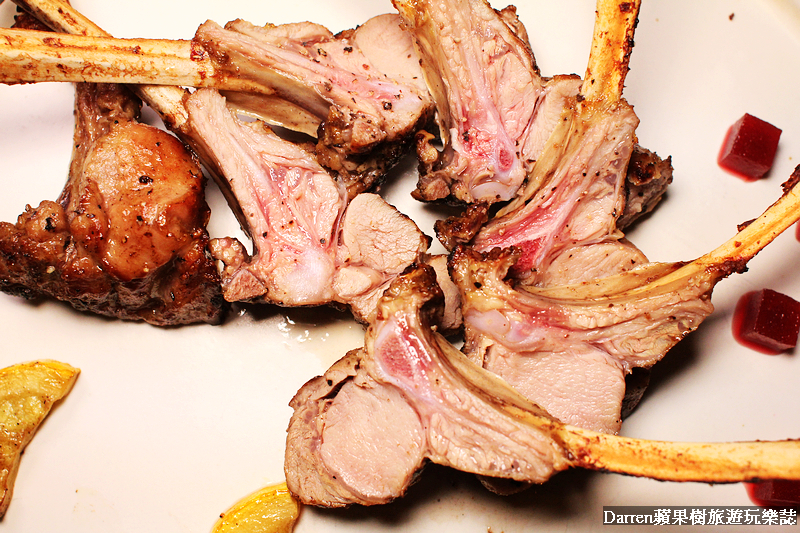 小牛排經過先煎過再下去烤等繁複料理過程,吃起來口感柔嫩加上鮮甜入味很好吃,也能搭配一旁的甜菜根和烤櫛瓜
