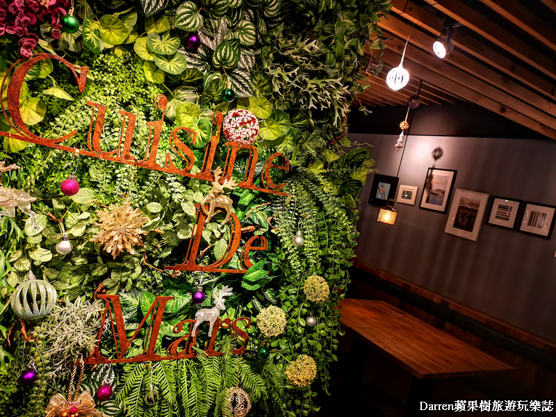 來到火星小廚有種走入都市叢林的錯覺,餐廳內有一大片的花草牆,森林花草設計搭配大量桌椅天花板木頭元素