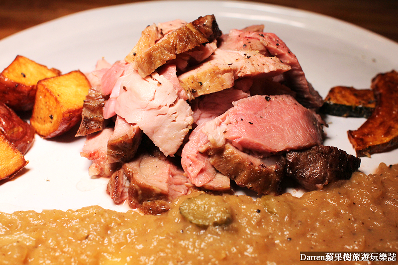 很特別的一道中西混搭料理,吃起來類似雞肉棟的口感,還有種南部粉腸的影子,低溫慢烤的雞肉非常地軟嫩