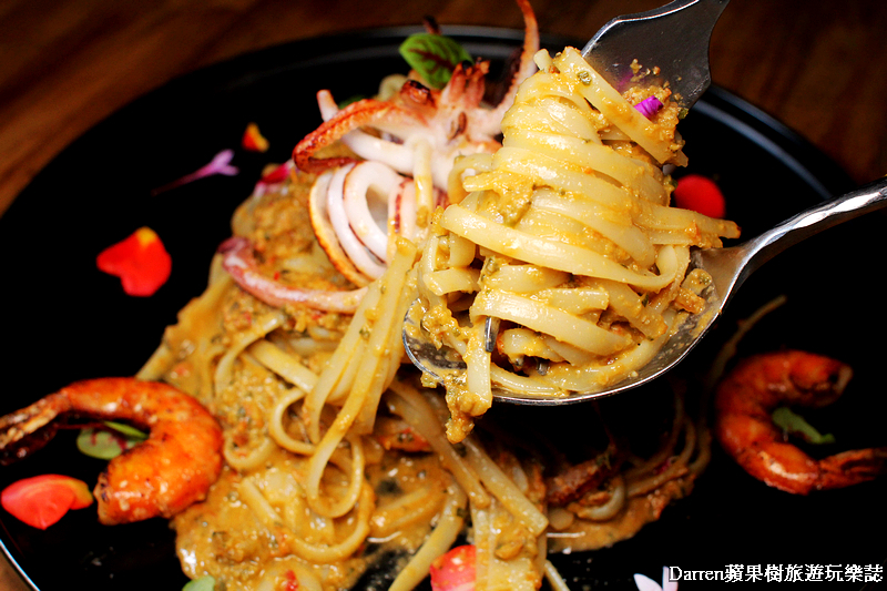 鮮蝦酥脆整尾都可以吃,義大利麵條巴點粉紅醬料,濃酬度適中非常順口,搭配略微Q度的麵條吃起來非常夠味唷
