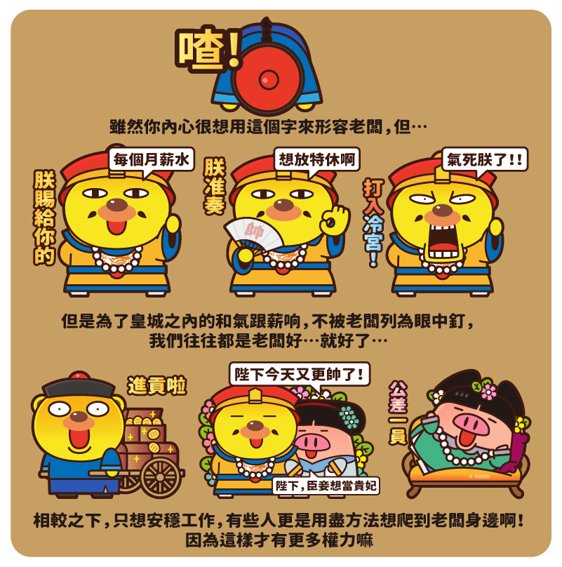 屁小熊 2019/03/12瀏覽: views 原來宮廷劇的劇本靈感就是從我們公司來的啊!(大誤) 近幾年宮廷劇超夯!只要一播出一定有超多人在討論,雖然是演劇,但為何會有這麼多人看呢?原來是因為宮廷劇跟職場超像的啊!不信你看! 老闆的話就像是聖旨,有時就算你有再好的建議,有時他不聽就是不聽啊…。 很多人只想求安穩的過,但有一批人還是會想要往上爬,而且不計手段,就像是古代的妃子爭寵啊! 時機歹歹,有時為了生活,在基層的我們也是能忍就忍啊…。不求三節獎金,只求每個月都有剩點零用金…。 Related Items圖文觀點職場甘苦 圖文觀點 2019/03/12瀏覽: views 屁小熊 愛分享上班搞笑的屁熊還有內褲豬,職場不開心的話就快來找我們 ■作者:屁小熊 ■主題:職場、漫畫、生活、搞笑 ■個人網站:https://padbear68ee07.blogspot.com/ ■FB粉絲團:https://www.facebook.com/ppbear123 ■連絡方式:197968ee07@gmail.com Related Items圖文觀點職場甘苦 next page