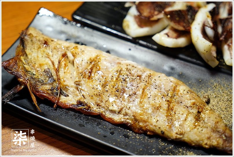 ▼鯖魚(1片),原味的鯖魚經燒烤後,更能將鮮甜美味鎖在魚肉裡頭!一旁搭配檸檬片與椒鹽,都可以視個人喜愛添加享用!