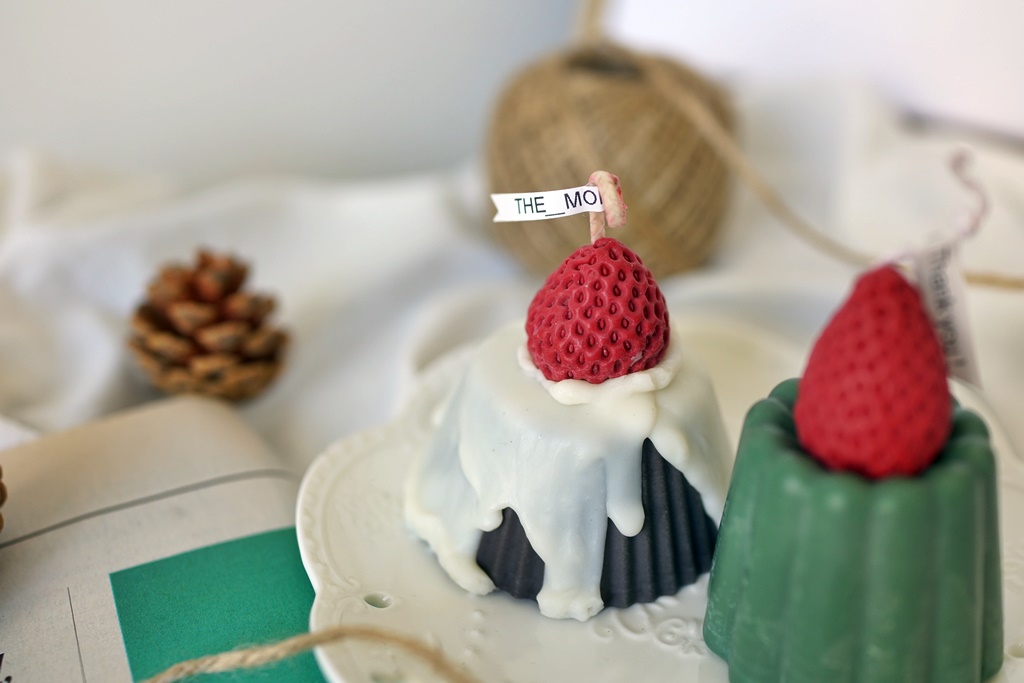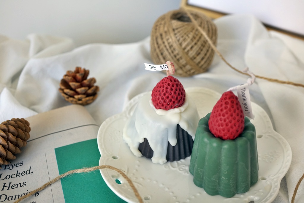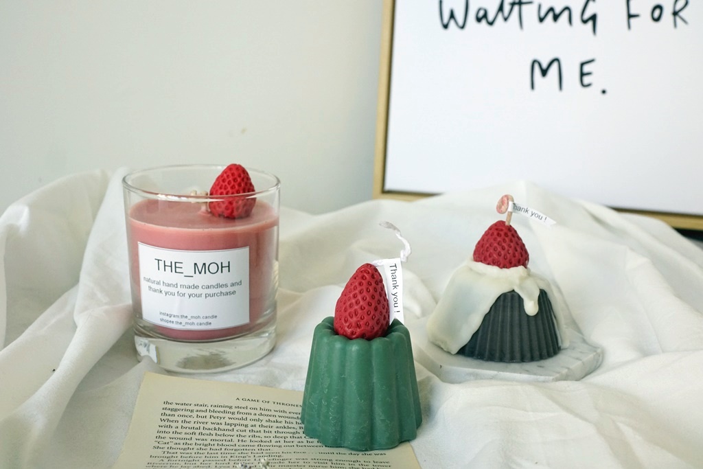 這次入手的三款蠟燭,共同特色就是草莓,做的好逼真啊!店家所使用的蠟是天然的大豆蠟,百分百純手工製作,摸起來的質地很舒服,聞起來也不會有任何的異味,除了顏色與造型,還可依照需求選擇有香氛或無香氛,香氛是純天然精油,自然的香氣跟甜味,讓人著迷。