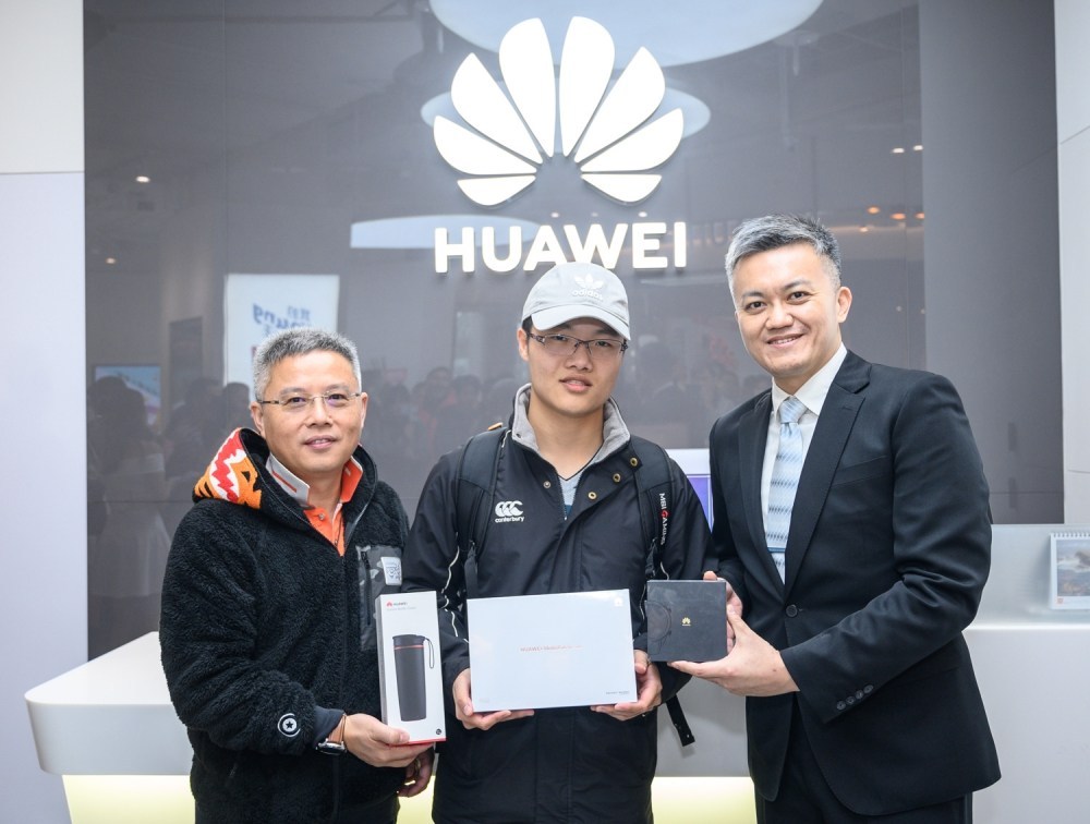 華為台北大直 ATT 體驗店開幕,來自苗栗的蔡同學漏夜排隊搶購開幕排隊禮「$1,288 開幕慶限定福袋」,幸運抽中 HUAWEI M5 Lite 平板,品牌特別加碼 HUAWEI WATCH GT