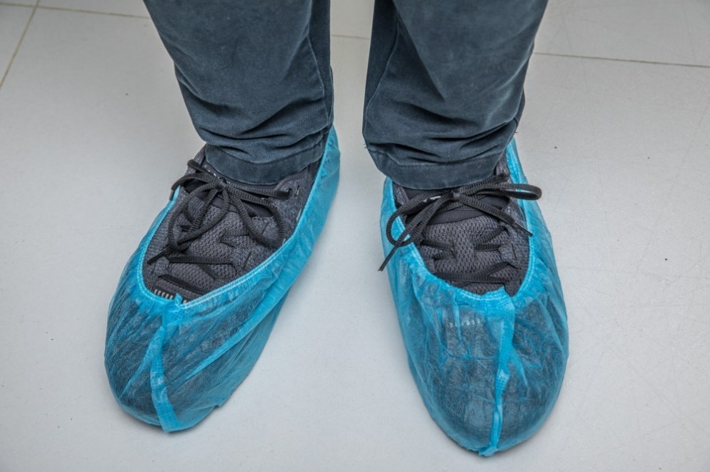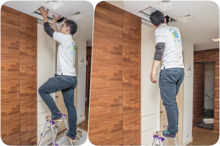 基本上,倍淨加BASICPRO到府施作都是以兩人一組,如果空間配置更大也可能會出動更多人,到場後都會先穿上鞋套,然後才會進入室內空間,不過因為熊希望他們把鞋子脫掉換上拖鞋,所以這次就直接是拖鞋上陣。