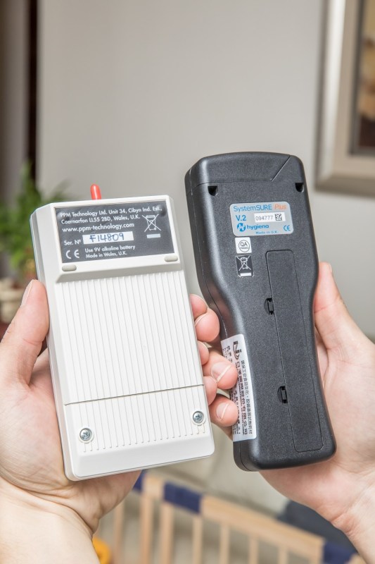 再來,就是先拿出兩種檢測室內環境的機器,熊稍微看了一下,也詢問過專業的施作人員,原來左邊的是測試室內空氣中甲醛濃度的機器,右邊則是檢查物品的細菌數機器,都是英國進口的。可別看這小小的兩隻,據說總價都是六位數起跳,相當精密且昂貴啊!