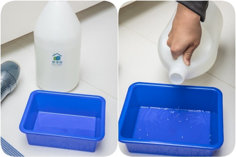 再來,就是倍淨加BASICPRO的獨家材料,倒出來之後再搭配刷子使用。