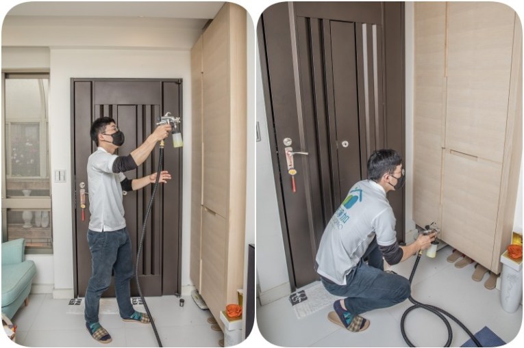 噴灑時施作人員都會戴上口罩,這也是很重要的流程