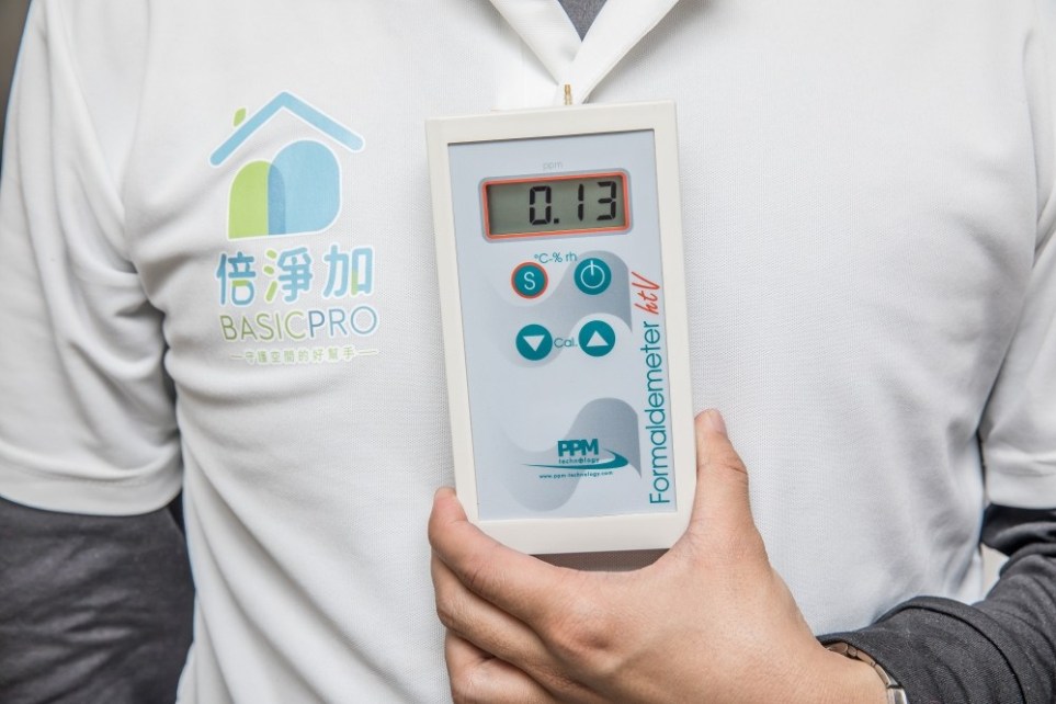 最後,就是用空間光動力工法加速反應時間,進而達成最佳的效果。對熊而言,看完這樣一連串的施作流程,一方面對於倍淨加BASICPRO的專業度相當信任,但也更想理解到底經過流程之後,原本的0.13 ppm是否真的能達成至少降低至0.08 ppm的標準值呢?