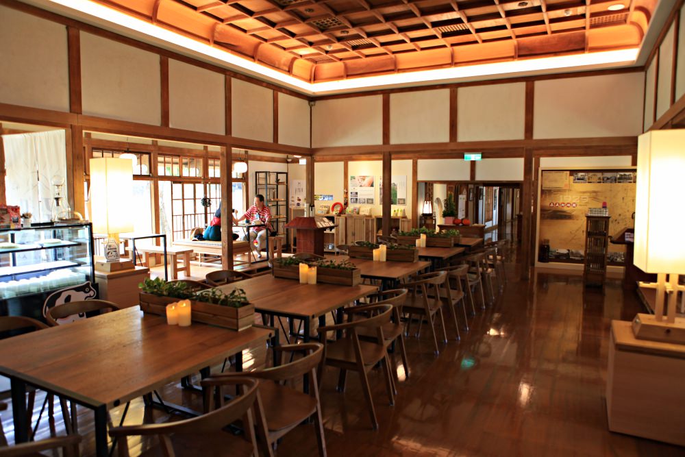 室內空間寬敞,挑高的木造方格造型天花板讓這個大空間顯得更加有設計感,從小細節看就可以感受到雖然是老建築物了,但處處都有著獨特的日式優雅美感。