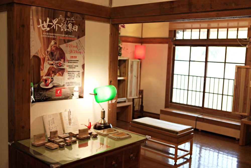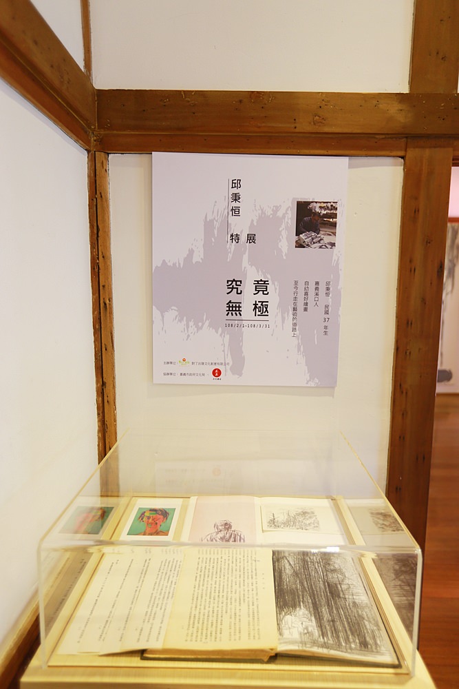 走在日式老屋裡腳步都不自覺的輕緩了,在這裡時間像是特地緩慢下來,一舉一動都要慢慢來,從屋外到屋內每個角落都維護得很乾淨,完全看不出這老屋已經有76年歷史。每個房間裡展示著不同作品,目前特展區展出書法家邱秉恆的書法作品,自然流露不受拘束的風格寫出嘉義人實實在在的精神。