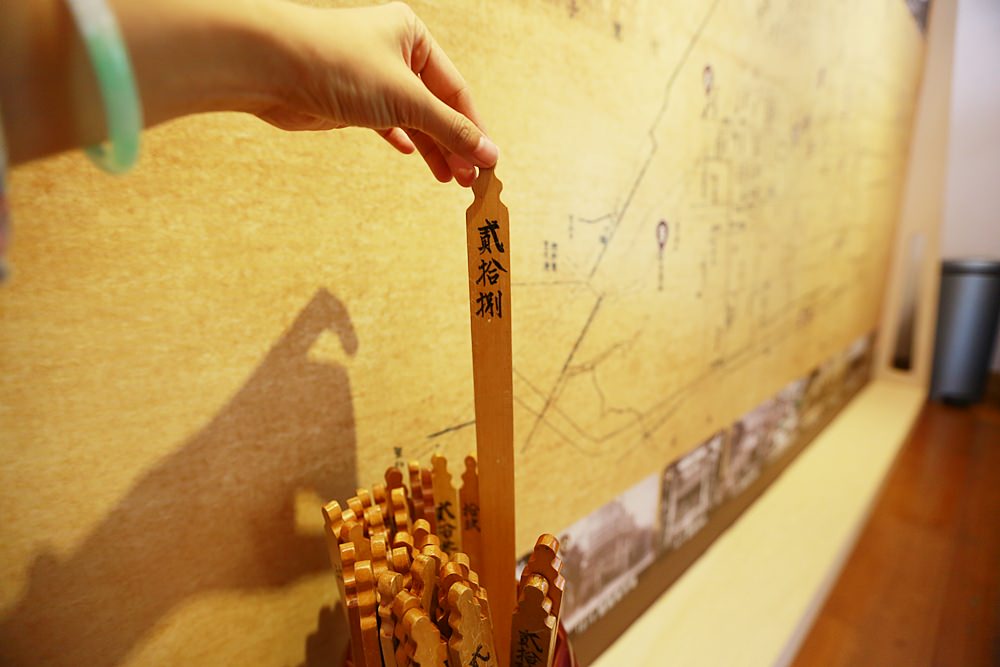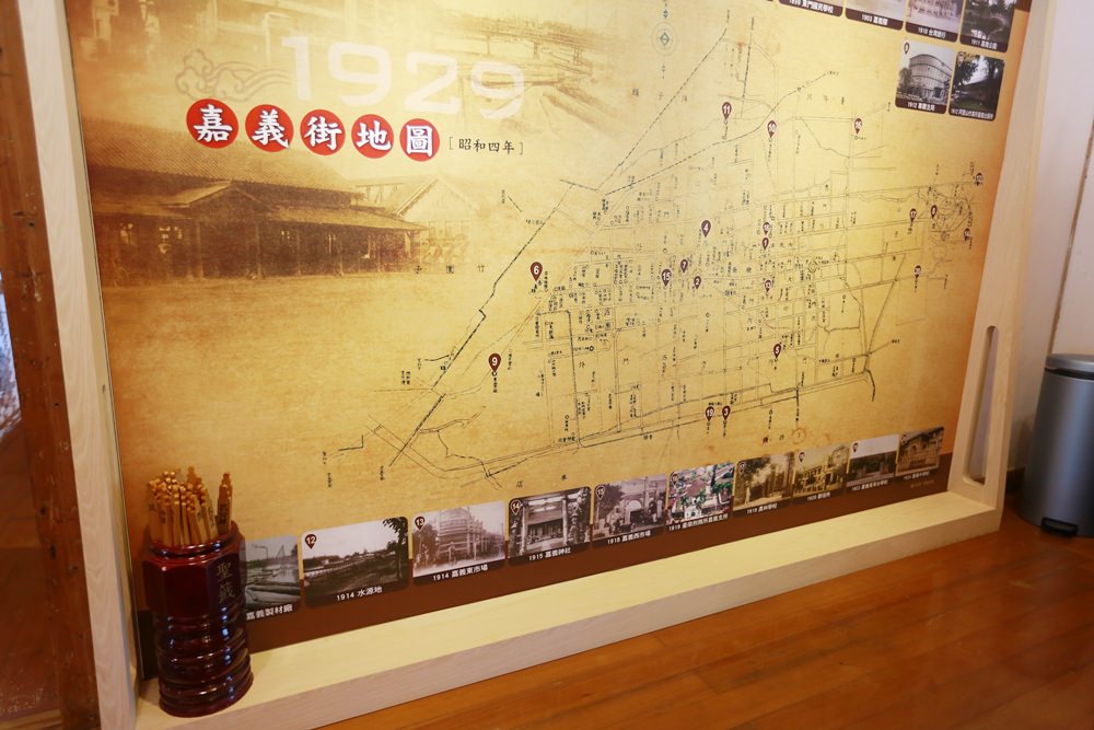 這裡設計了籤筒,不是讓遊客拜拜抽籤的,是用抽籤來了解昭和四年的嘉義市街道圖特色景點,讓遊客可以進一步了解嘉義歷史。