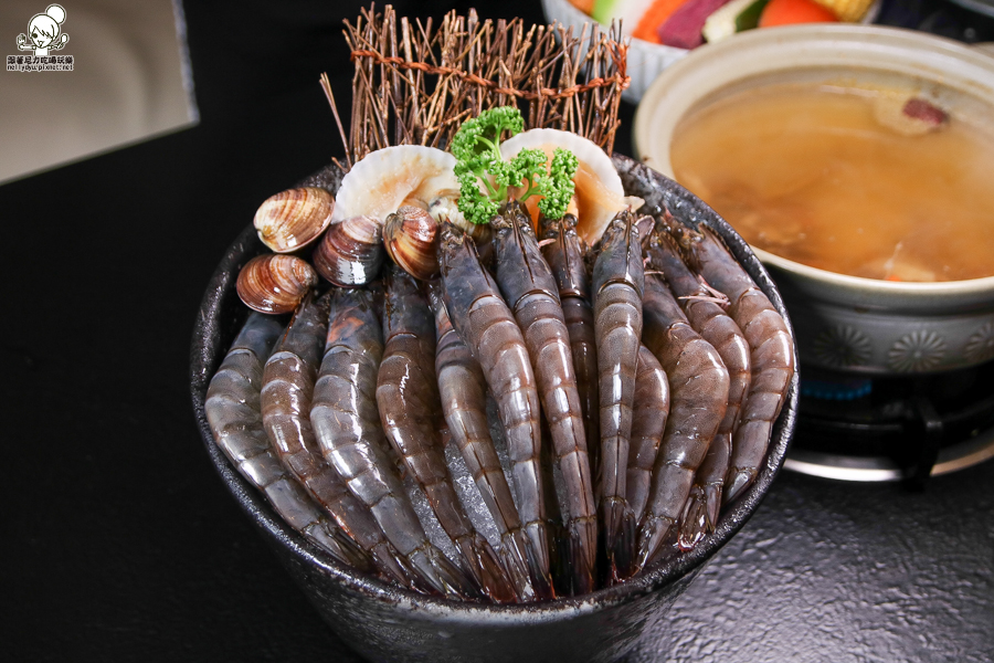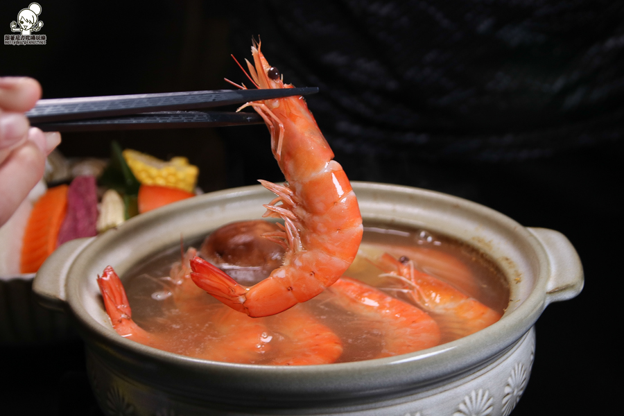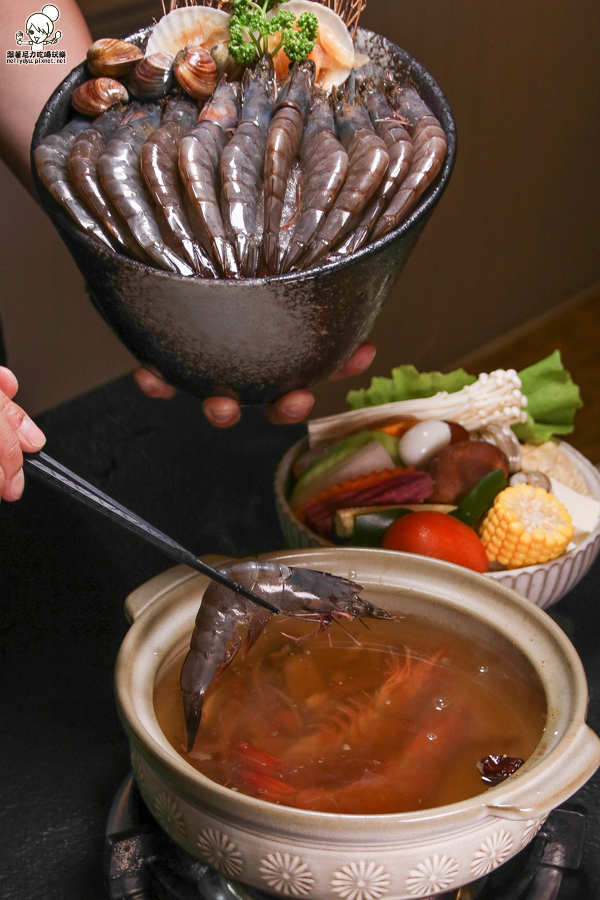 兼具視覺效果的燒酒海味蝦,使用兩種酒黃金比例搭配的湯頭
