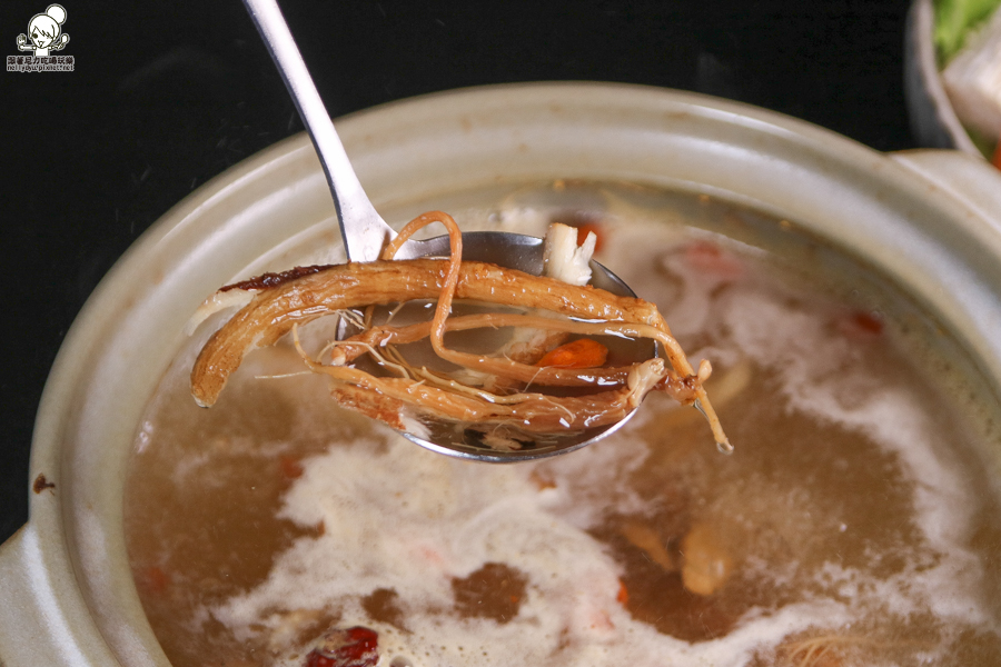 燉煮出燒酒香氣,提出藥膳的滋味,湯頭喝起來帶有酒香甜味很舒服
