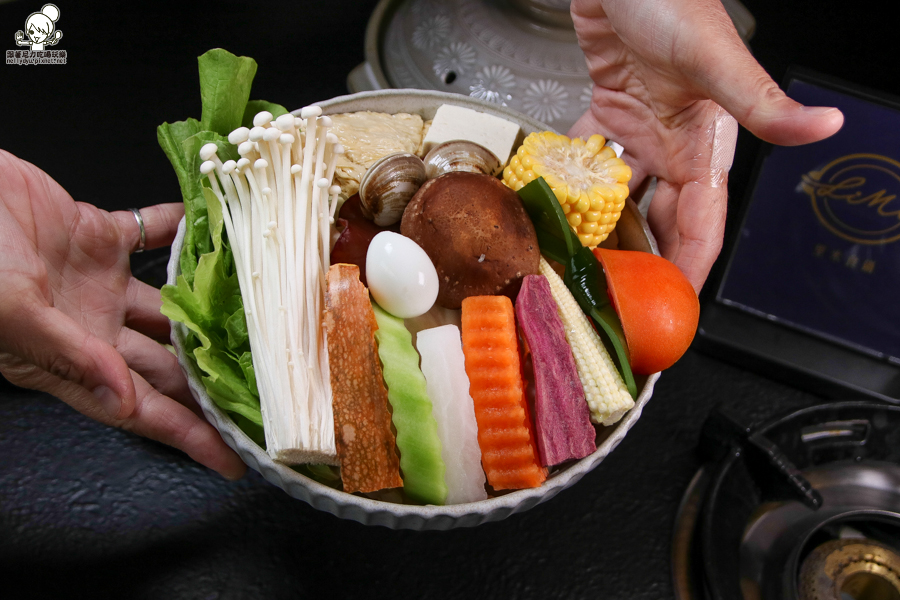 菜盤會直接都擺放在鍋物上,慢慢熬煮蔬菜、火鍋料的甜味會與湯頭融合