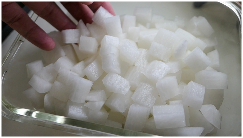 食材: 白蘿蔔半條、水300ml、白醋150ml、糖150g、鹽巴2小匙
