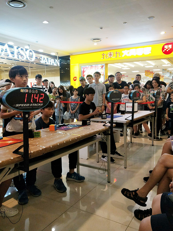 像是益智桌遊競賽、戰鬥陀螺競賽、還有包含這次在高雄夢時代7樓舉辦的小丸號魔術方塊挑戰賽