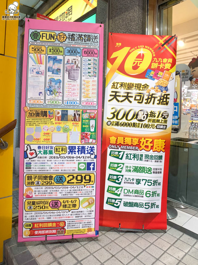 持九九卡+當日單筆消費滿 299 元以上之發票,即可兌換紅利點數 299 點。