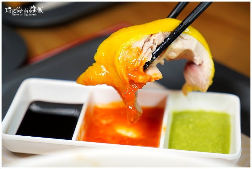 ▼加上醬料更能提襯不少雞肉的鮮甜,大口建議可以依序搭配老抽、薑蔥醬、辣椒醬來享用,就能吃到多種不同風味的海南雞啦!值得一提的是他們家的老抽是特別使用新加坡進口的廣祥泰醬油,口味濃重,鹹甜有味,搭配土雞更加甜美開胃啦!