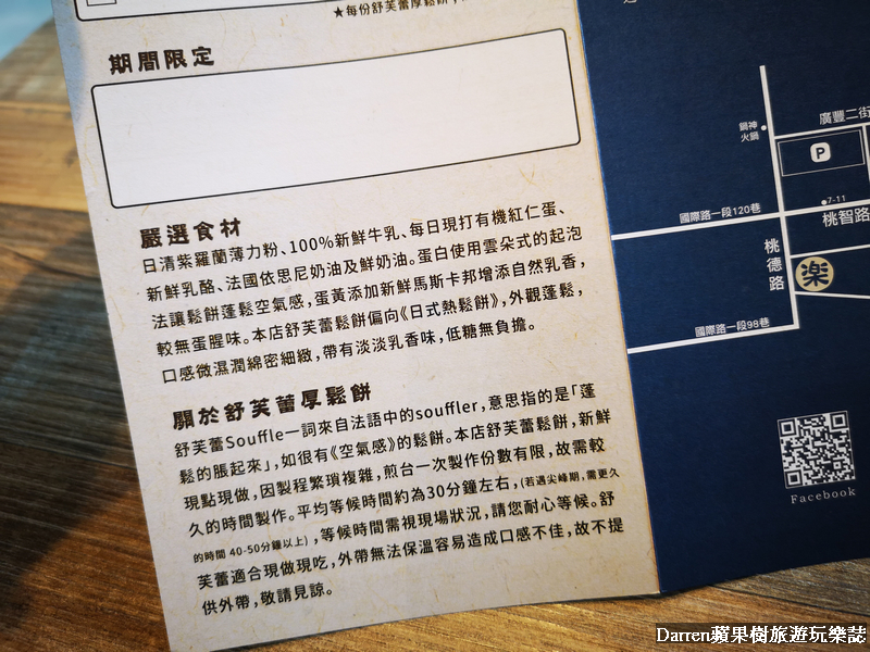 桃園舒芙蕾推薦來分享這家鄰近廣豐新天地的楽麥舒芙蕾製造所,收在口袋名單很久,一直到最近才有機會