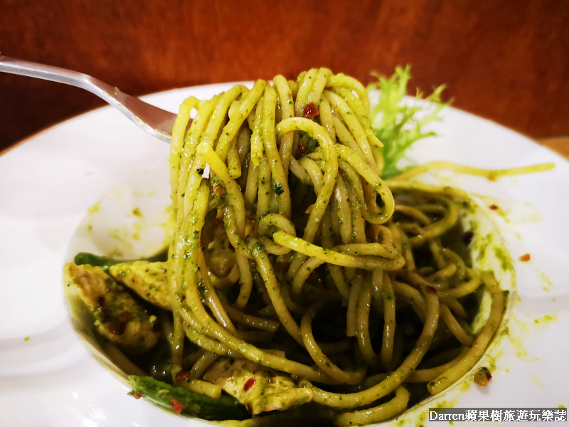 雞肉吃起來很嫩又大塊,濃郁青醬香氣沾附著義大利麵入口吃起來Q彈,下次應該會空著肚子來吃也沒問題