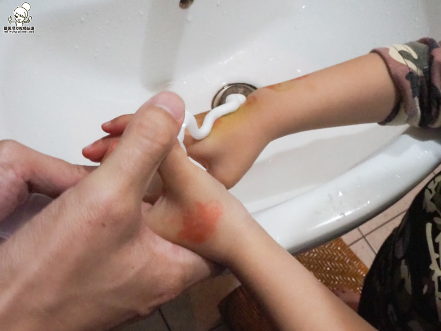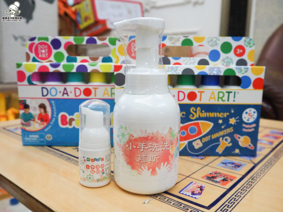 不小心彩繪在身體上也不打緊唷~可以用專用小手洗洗慕斯清洗