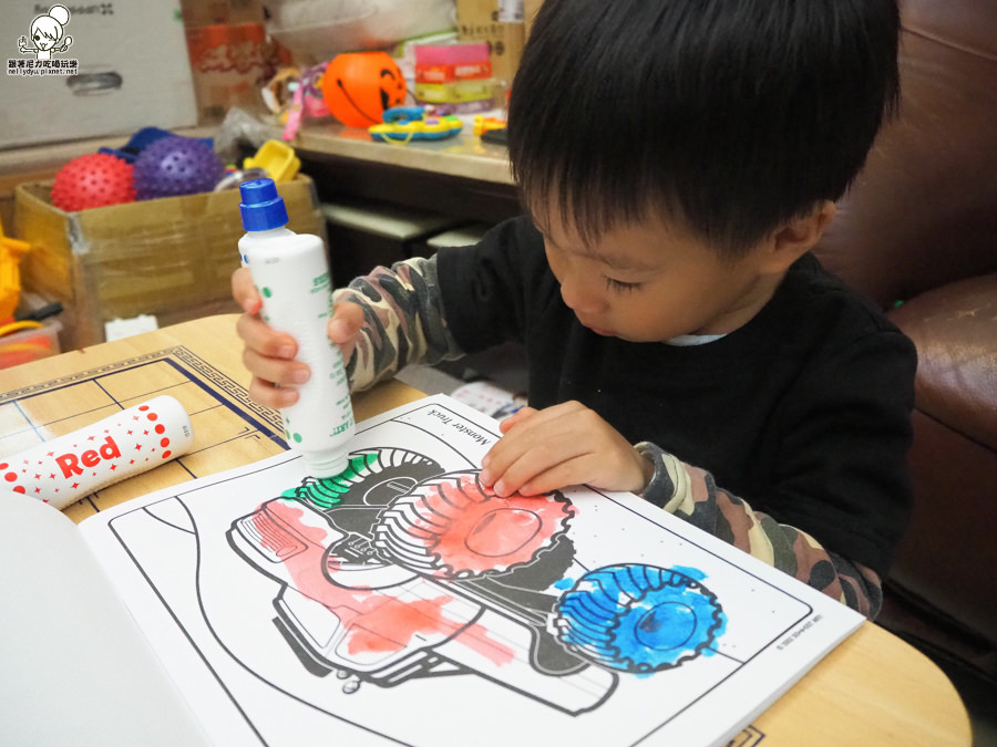 也可以陪孩子一起互動、引導該如何著手彩繪,都是一個很棒的親子互動