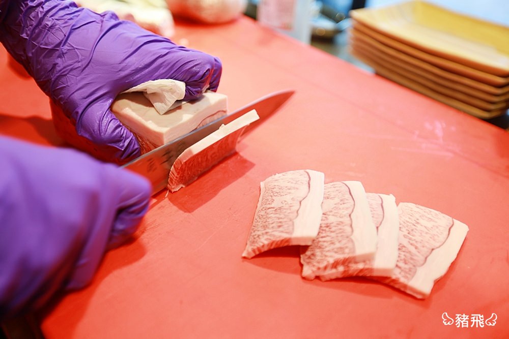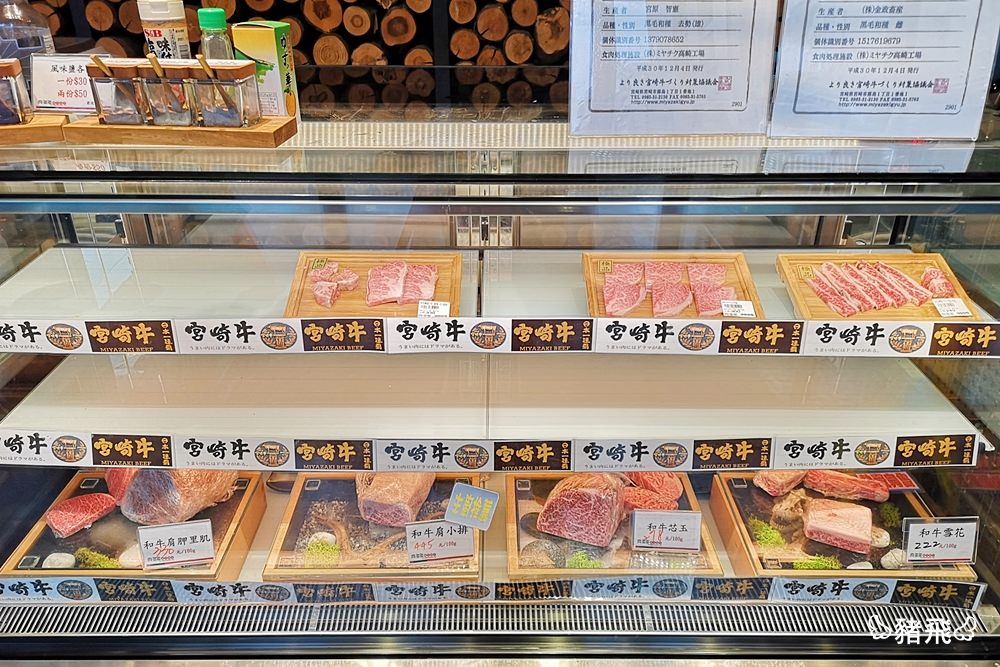 店內還有一區櫃台前面人氣很旺,大家都圍在櫃位前面看廚師刀起刀落處理著厚切宮崎和牛,現場會提供多達十種的和牛部位,想要品嚐怎樣的口感都可以詢問店員喔。