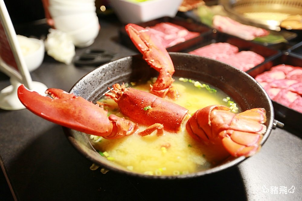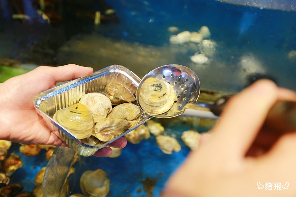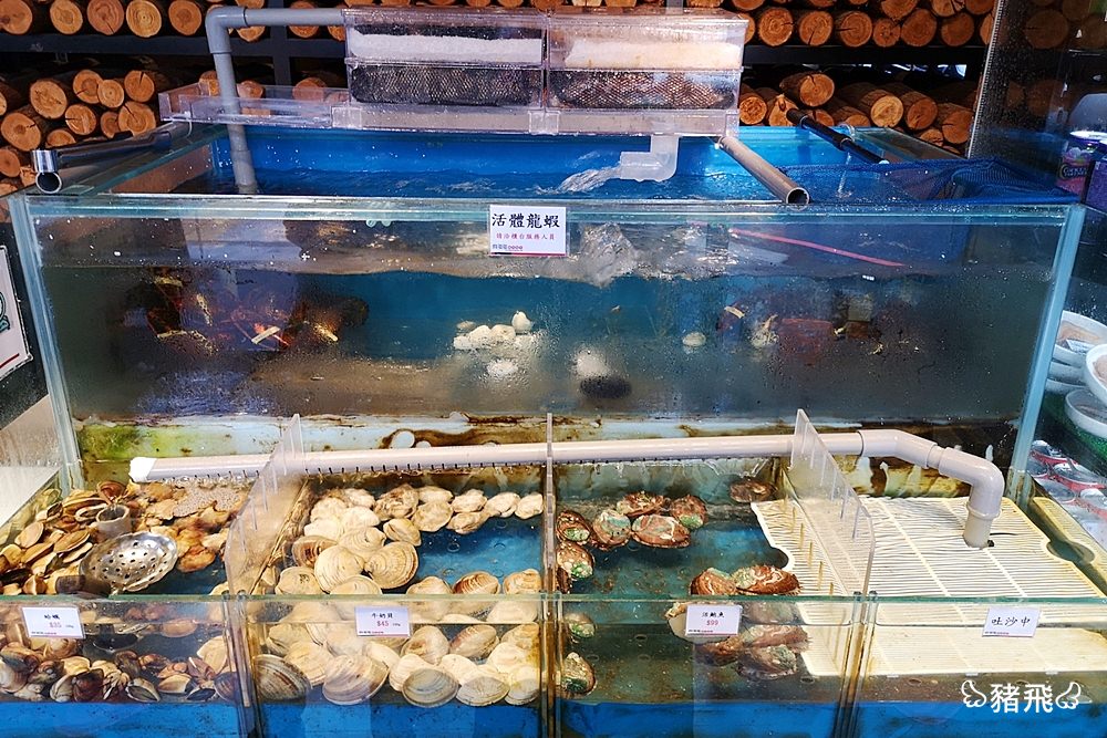 現場還有水族箱海鮮,想要多少份量自己撈自己秤重,價格客製化,就像在逛菜市場一樣喔,而且近期更推出588元活龍蝦,會由專人代烤或煮味噌湯。看看這些肥美龍蝦,就要放進我肚子裡啦!光是這優惠價格多吃幾隻都划算。