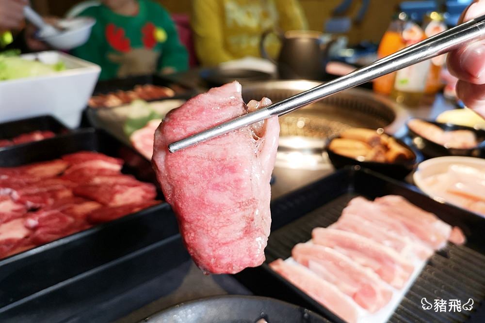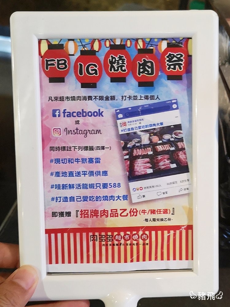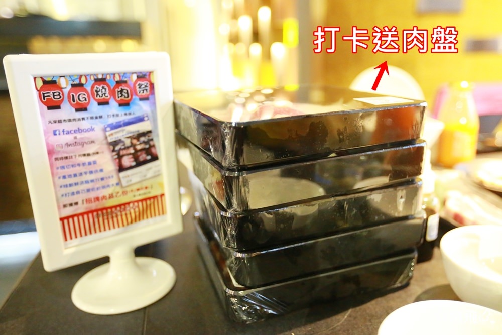 看看店家大氣打卡送肉盤活動,一個人打卡就送一盤,可以選擇牛肉或是豬肉,而且幾支手機打卡就送幾盤,毫不手軟的肉盤送上桌看傻了我們,送的都要比自己點的多了。
